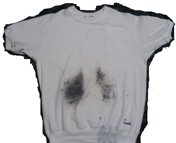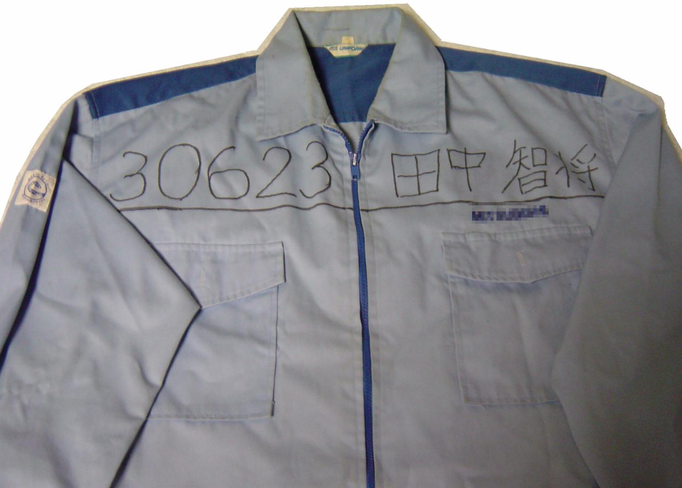 コメント:私の中学のジャージです。1〜2年は布ゼッケンを縫い付けて学年組番号・氏名を書きますが、3年生はマジックで直に書いてもいいことになっていて、直接書いてる人が多いです。